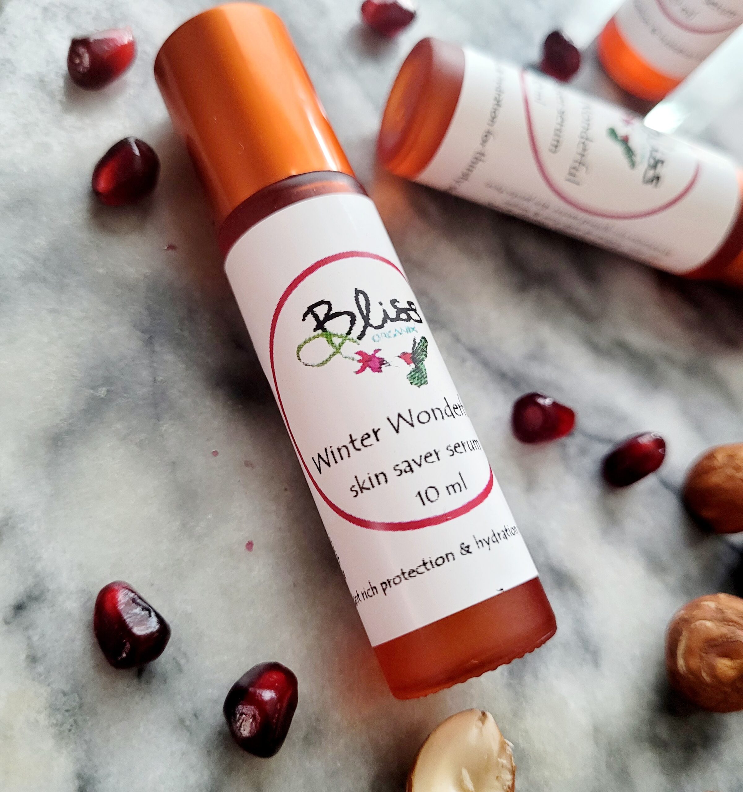 Organic oils of pumpkin seed, pomegranate seed, cranberry seed, sage, hazelnut & jojoba, organic essential oil blend with notes of conifer & spice.